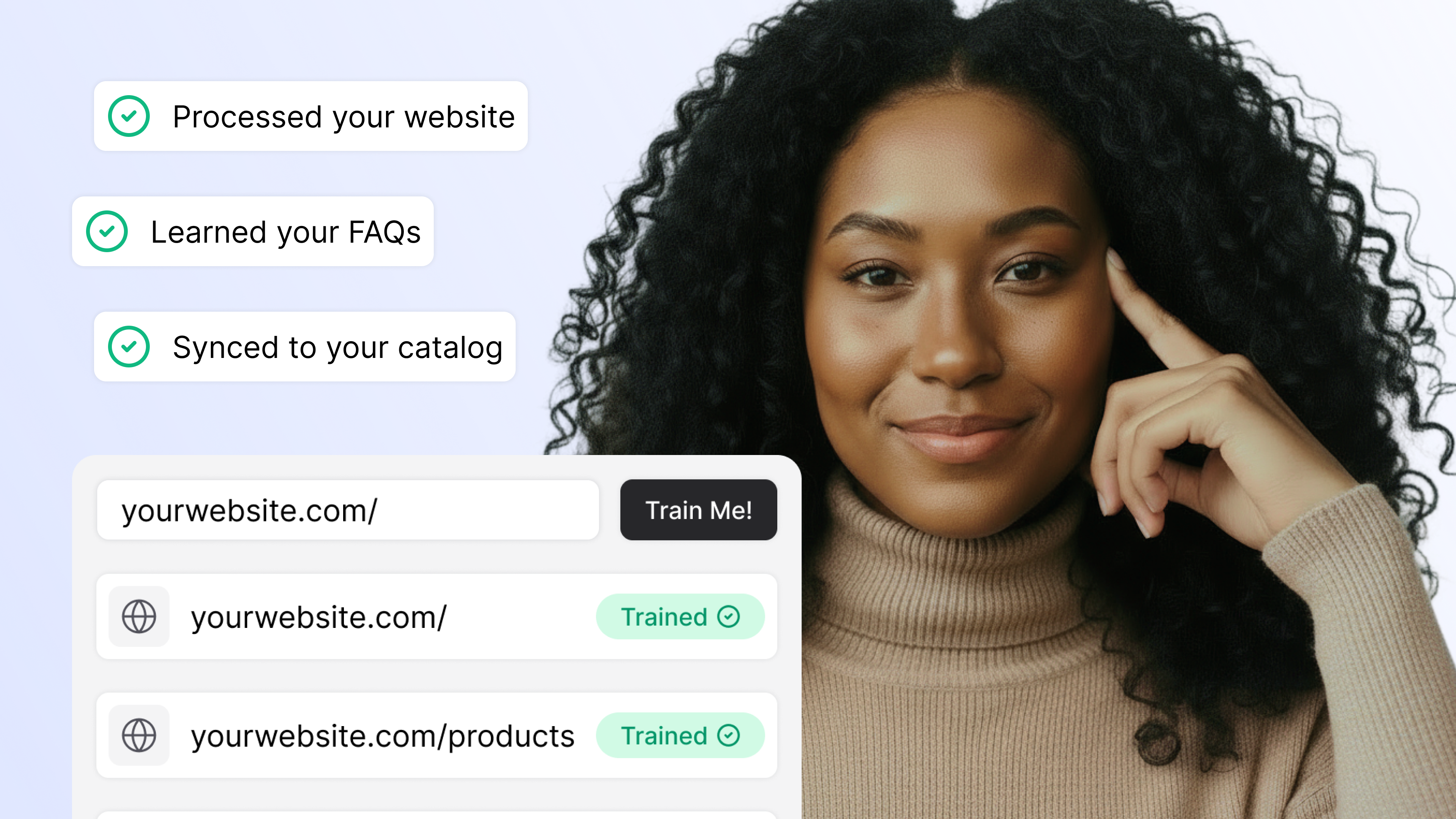 Just enter your website. We pull the key details, pick the perfect use case, and instantly create an AI employee that works 24/7.
